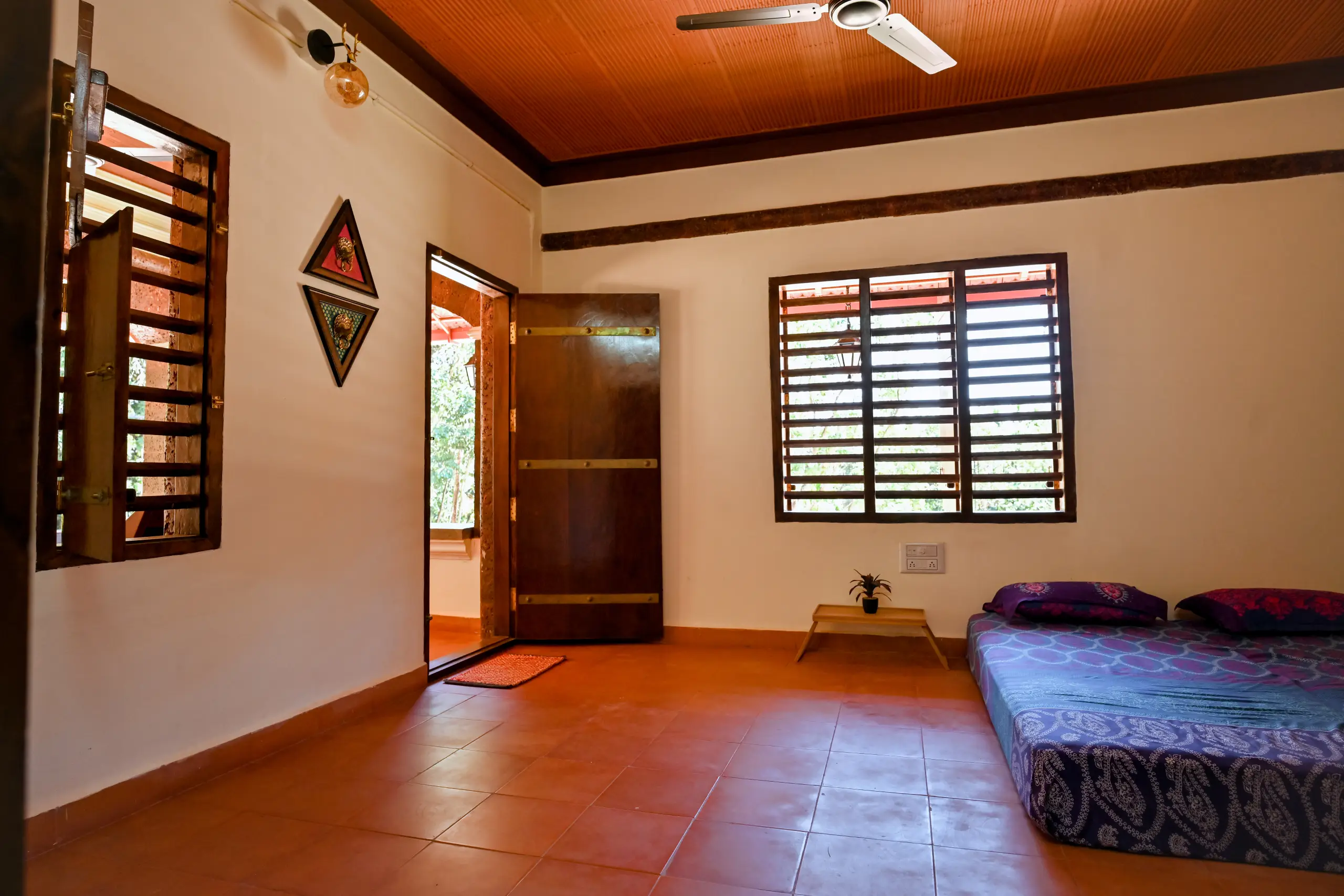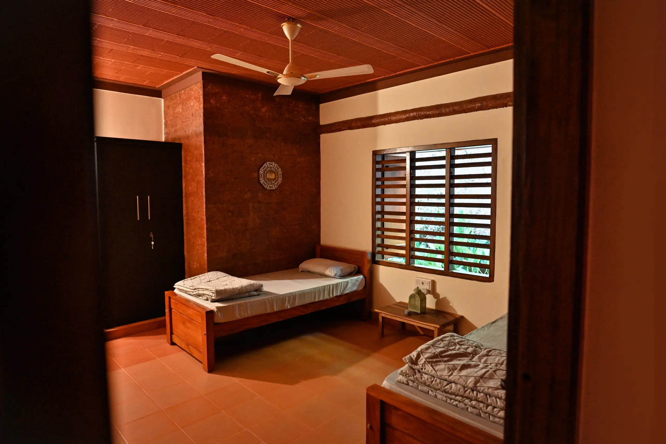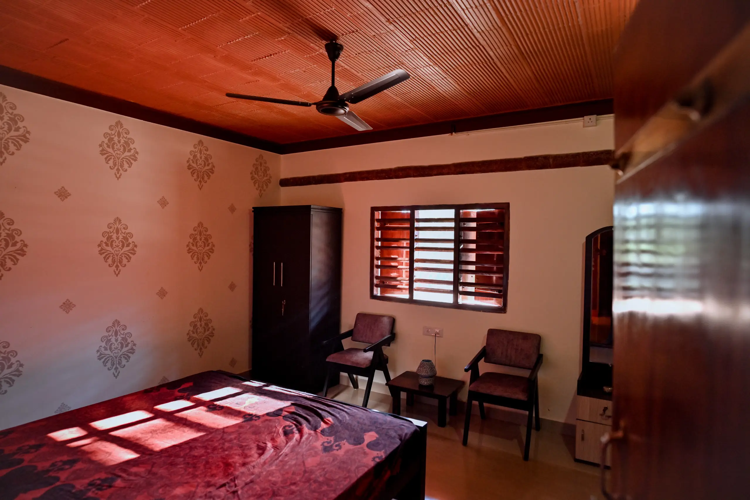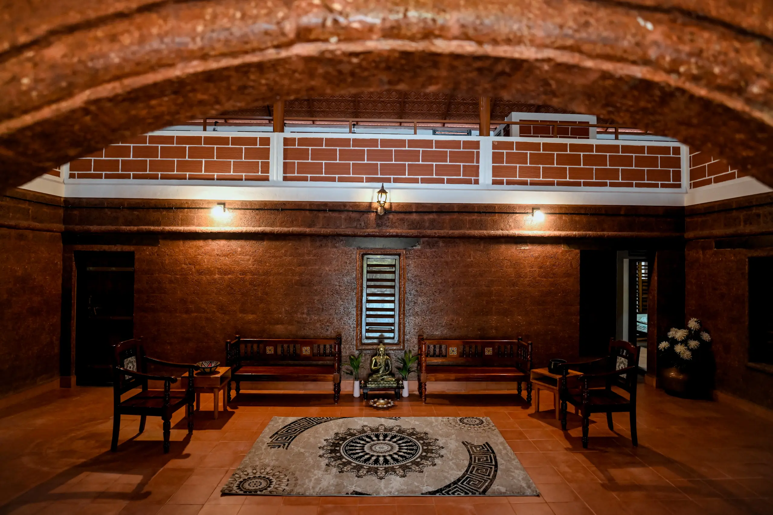Tucked away amidst the rolling farmlands and untouched beauty of Dakshina Karnataka, Maneyangala offers an unparalleled retreat for those seeking peace, privacy, and a deeper connection with nature. Built with traditional red-stone and clay tile architecture, our retreat offers a cool, earthy haven where nature’s rhythm is your soundtrack. Whether gathering with loved ones or hosting a memorable event, you’ll find the space to reconnect with each other and the nature around you.